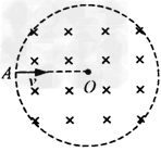 如图所示,分布在半径为r的圆形区域内的匀强磁场,磁感应强度为B,方向垂直纸面向里。电量为q、质量为m的带正电的粒子从磁场边缘A点沿圆的半径AO方向射入磁场,离开磁场时速度方向偏转了60°角。试确定: