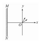 电子质量为m、电量为e,从坐标原点O处沿xOy平面射入第一象限(包括x轴、y轴),射入时速度方向不同,速度大小均为v0,如图所示.现在某一区域加方向向外且垂直于xOy平面的匀强磁场,并保证粒子均从O点进入磁场,磁感应强度为B,若这些电子穿过磁场后都能垂直射到荧光屏MN上,荧光屏与y轴平行,求: