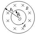 据有关资料介绍,受控核聚变装置中有极高温度,因而带电粒子没有通常意义上的“容器”可装,而是由磁场约束带电粒子运动使之束缚在某个区域内.现按下面的简化条件来讨论这个问题:如图所示是一个截面为内径R1=0.6m 外径R2=1.2m的环状区域,区域内有垂直于截面向里的匀强磁场.已知氦核的比荷