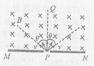如图所示,MN是一荧光屏,当带电粒子打到荧光屏上时,荧光屏能够发光MN的上方有磁感应强度为B的匀强磁场,磁场方向垂直纸面向里,P为屏上的一小孔,PQ与MN垂直一群质量为m、带电荷量q的粒子(不计重力),以相同的速率v,从P点沿垂直于磁场方向射入磁场区域,其入射方向分布在以PQ为中心,夹角为2θ的范围内,不计粒子间的相互作用,以下说法正确的是()